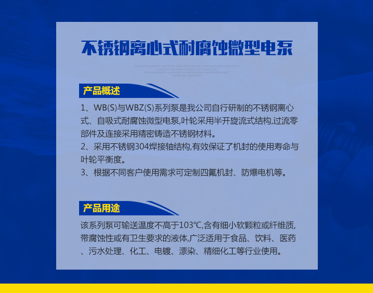 WBZ(S)不銹鋼自吸式耐腐蝕離心泵